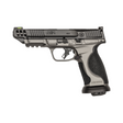 Built for competition right out of the box, this metal-framed 9mm pistol is designed to give competitive shooters the edge. The Competitor comes with a 5-inch barrel, has an enhanced sear for lighter, crisper trigger let-off, and includes a flared magazine well for fast and efficient reloads. Boasting a new look, the aggressive lightening cuts on both the top and sides of the slide ultimately reduce the amount of weight in front of the chamber and, in return, help improve the recoil balance point. The slide is cut for optics, includes a fiber optic front sight, and blacked out serrated rear sight. The Competitor comes with an oversized mag release that is reversible for both right and left-handed users and ships with a total of four magazines. Choose from models available in 10+1 or 17+1 round capacities with a Tungsten Gray Cerakote® or black Armornite® slide finish. Smith & Wesson is proud to introduce the Performance Center M&P9 M2.0 Competitor.
